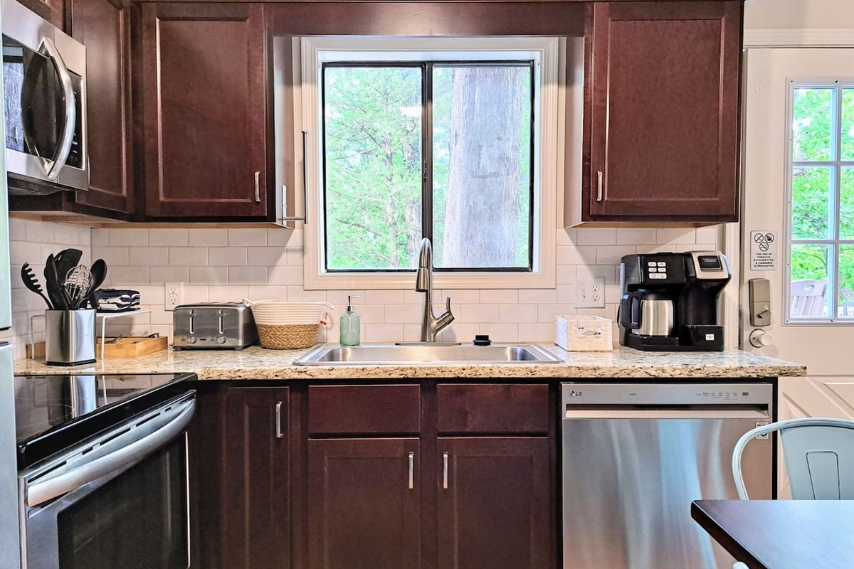 - Blender, griddle, pots & pans, Pyrex, toaster